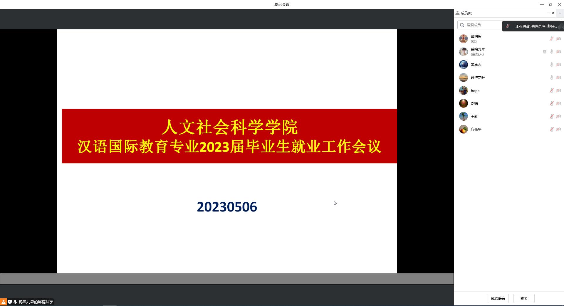 5月6日晚,太阳成集团tyc122ccvip汉语国际教育专业组织召开2023届毕业生就业工作推进会,会议由公司党委副书记黄宇志主持,毕业班班主任、辅导员及有关就业指导教师参加会议。