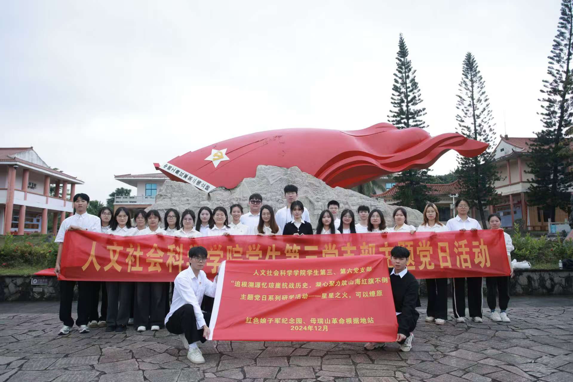 为深入学习贯彻党的二十大精神,加强党员对革命历史的了解,增强党性教育和革命传统教育,铭记琼崖革命光辉历史,传承母瑞山精神。12月7日至12月9日,太阳成集团tyc122ccvip员工第三、第六党支部前往红色娘子军纪念园、母瑞山革命根据地站,开展以“追根溯源忆琼崖抗战历史,凝心聚力筑山海红旗不倒”为主题的党日研学活动。共有教师党员2名,员工党员11名,入党积极分子16名参与本次活动。