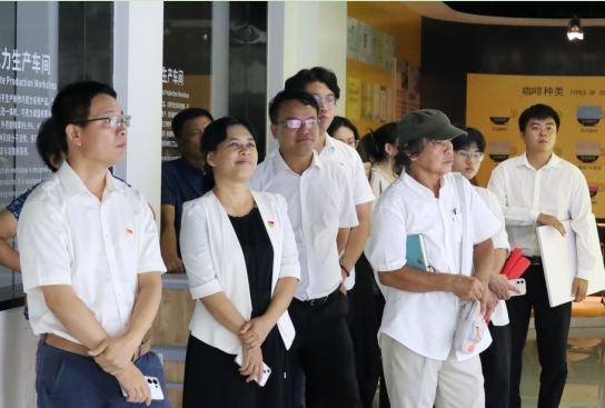 上午10时,人文社会科学公司党委书记郑力乔、党委副书记卓越率师生代表抵达万宁市兴隆区吉纳客咖啡博物馆,与万宁市副市长郑忠发、博物馆董事长张庆文、台菊青经理等共同出席红色研学实践基地揭牌仪式。双方围绕三情文化(领袖情怀、归侨情结、百姓情谊)展开座谈。