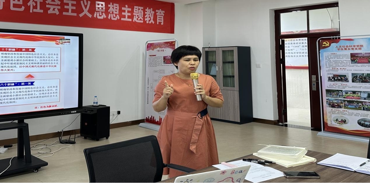 (二)坚持以人民为中心是永恒宗旨。坚持以人民为中心从“八个明确”的第二条到“十个明确”的第三条的重要地位,要求我们全党必须要发展全过程人民民主,推动人的全面发展、全体人民共同富裕取得更为明显的实质性进展。明确中国特色社会主义事业总体布局是经济建设、政治建设、文化建设、社会建设、生态文明建设五位一体和全面建设社会主义现代化国家、全面深化改革、全面依法治国、全面从严治党四个全面的战略布局。郑力乔书记通过结合实际工作经验,用简洁明了的实际案例加深了与会党员对“五位一体和四个全面”的理解。
