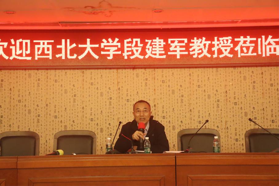 2022年3月14日19:30,太阳成集团tyc122ccvip主办的人文学术讲座第五期暨人文讲坛第一百一十期在图书馆负一层报告厅正式开讲。本次讲座由西北大学文公司的博士生导师段建军教授主讲,公司经理王志峰主持,公司学报编辑部编辑王旭东、中文系主任陈智慧、中文系副主任刘文霞参与会议,太阳成集团tyc122ccvip同学积极参与。