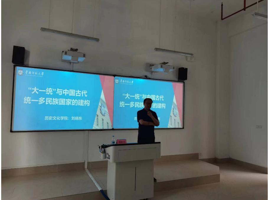 刘晓东教授从中华民族概念出发,讲解了大一统概念的出现及内涵的演变、大一统的基本框架、大一统的理想模式等内容。