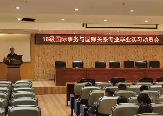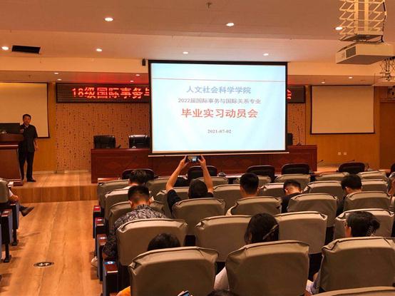 国际事务与国际关系专业于7月2日晩图书馆负一层报告厅召开18国关毕业实习动员大会,18国关的59名同学全部参加。会议由国际事务与国际关系专业负责人黄田园主持,人文社科公司党委副书记符昌昭、副经理方礼刚到会并同员工亲切交谈,国际事务与国际关系专业教师肖玮、张逢博、蔡志鸿等出席,现场气氛热烈,同学们积极听讲、认真记录。