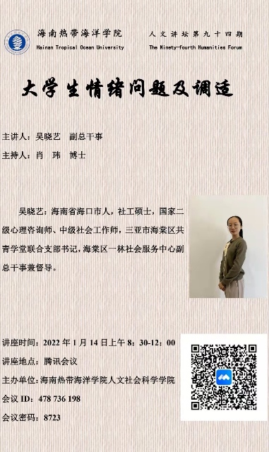 1月14日:8:30—12:00延请海棠区一林社会服务中心吴晓艺副总干事作题为《老员工情绪问题及调适》的心理学实用知识讲座。