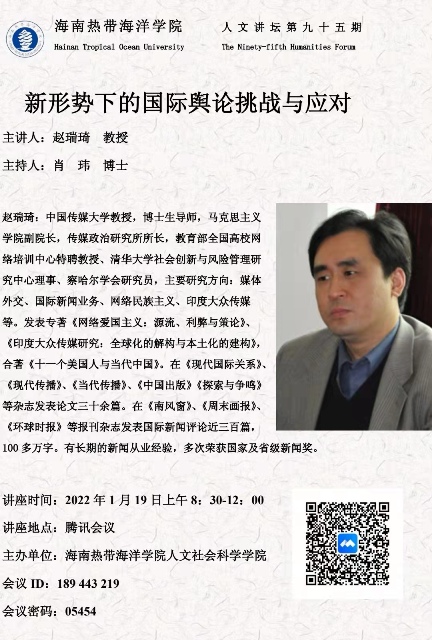 1月19日:8:30—12:00延请中国传媒大学赵瑞琦教授作题为《新形势下的国际舆论挑战与应对》的学术讲座。员工听讲后撰写700字心得。